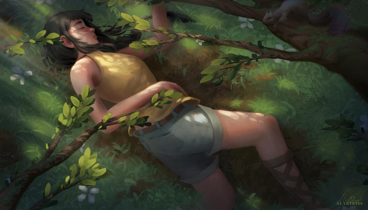Fully painted and rendered half-body piece. Comes with a simple background - including solid color, mist/sky, or heavily blurred. Can do more complex backgrounds, which will increase the price.